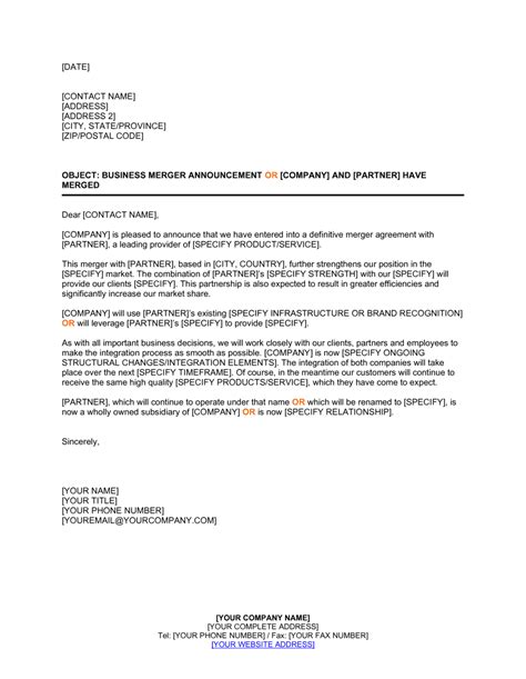 Download online COMPANY MERGER ANNOUNCEMENT SAMPLE Reader